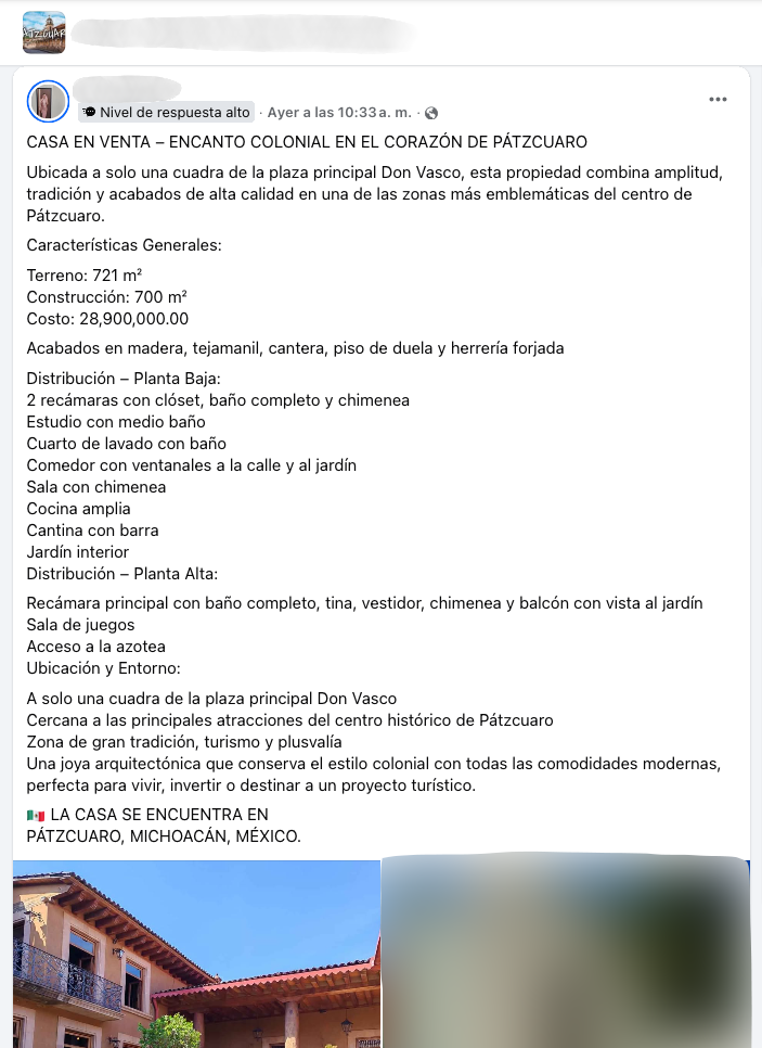• Especulación Habitacional: Estas agencias promueven la compra de casonas y fincas en el centro histórico no como hogares, sino como «activos de inversión para rentas cortas». Esto dispara artificialmente el valor de la tierra y expulsa a las familias patzcuarenses de sus propios barrios.
