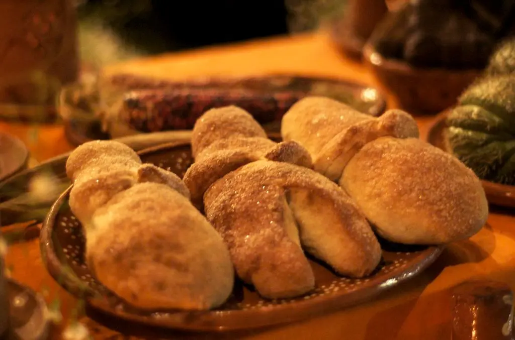 - Las «Canillas» u Huesitos: Las tiras de masa que cruzan el pan no solo representan los huesos de los muertos, sino que, dispuestas en forma de cruz, simbolizan los cuatro puntos cardinales o los cuatro dioses purépechas (Tarascos), alineando la ofrenda con la cosmovisión mesoamericana.