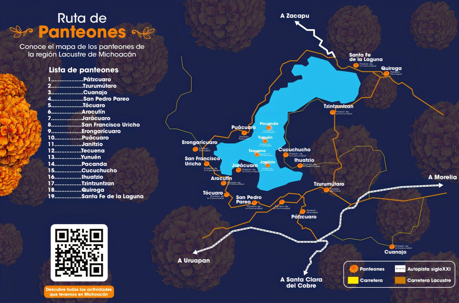La Fiesta de las Ánimas (Anímecha K’éjtsitakua) en la región de Pátzcuaro es un evento cultural de talla mundial que se vive en la intimidad de las comunidades. Es fundamental entender que esta celebración no se concentra en un solo punto turístico, sino que ocurre de manera simultánea en múltiples poblaciones y cementerios alrededor del lago y la meseta purépecha (como Janitzio, Tzintzuntzan, Ihuatzio y Jarácuaro).