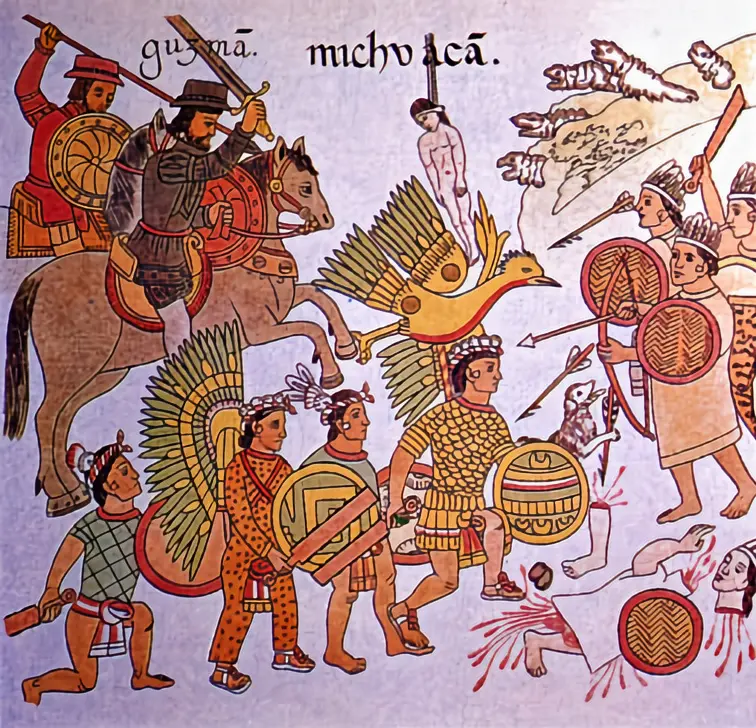 Todo cambió con la llegada de los españoles. En 1526, Nuño de Guzmán desató el terror: saqueó templos, esclavizó a la gente, quemó lo que no podía robar. En 1530, ejecutó al último emperador, Tangáxoan II, en lo que hoy es la ciudad de Ciudad Hidalgo (antes Taximaroa)*, a unos 120 km al noreste de Pátzcuaro, en el límite con el Estado de México, cerca de Temascalcingo. El imperio cayó. La tierra quedó en silencio.