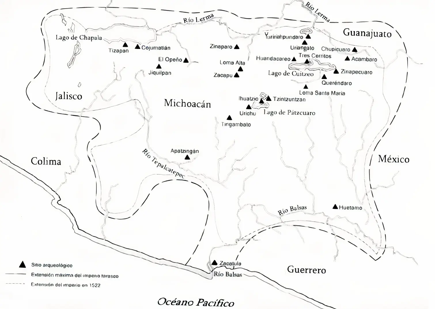 Extensión máxima del Imperio Tarasco y hacia 1522
